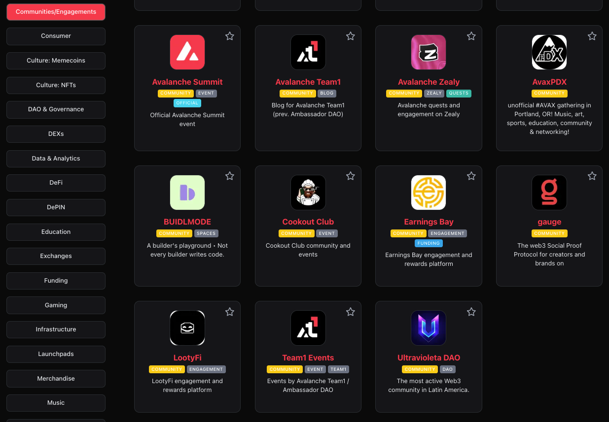 Once someone has taken their first steps through Cascade, the next step is finding their place in the Avalanche community. Cascade makes this seamless by pointing to groups like Avalanche Team1, the Cookout Club, and Ultravioleta DAO. Each represents a different entry point: education and onboarding through Avalanche Team1, alpha and culture through the Cookout Club, and collective learning and experimentation through Ultravioleta DAO.