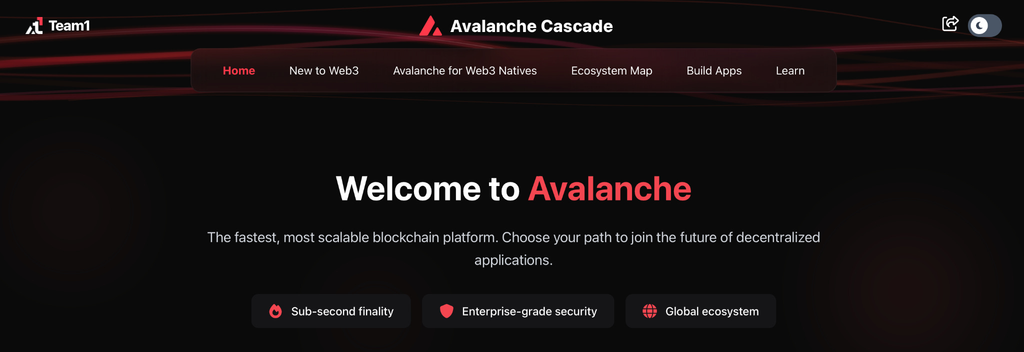 Explore Avalanche through Cascade, a community-driven hub with 450+ projects, beginner guides, tools for Web3 natives, and content created by Team1 members worldwide.