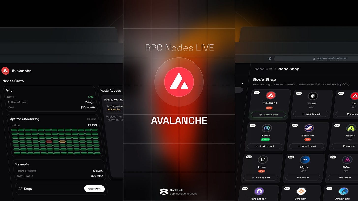 Node infrastructure expanded significantly with Avalanche RPC nodes going live on NodeHub, giving developers instant, reliable access to the network.