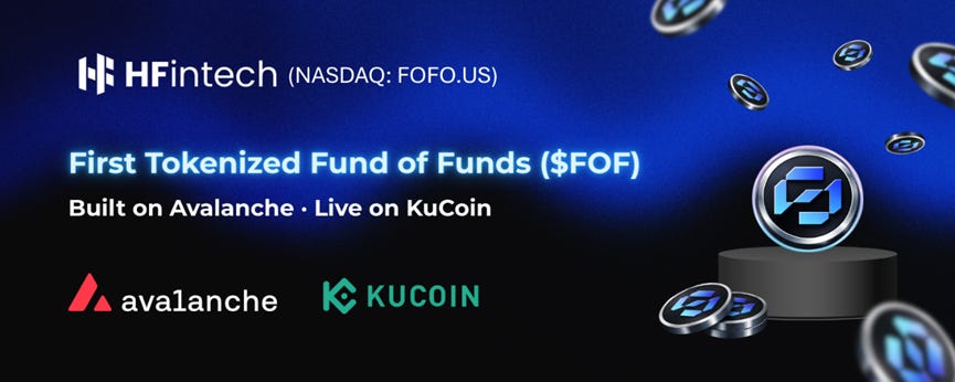 NASDAQ-listed Hang Feng Technology Innovation (FOFO) officially launched its first Tokenized Fund of Funds ($FOF) on Avalanche and distributed globally via KuCoin. [FOF announcement]