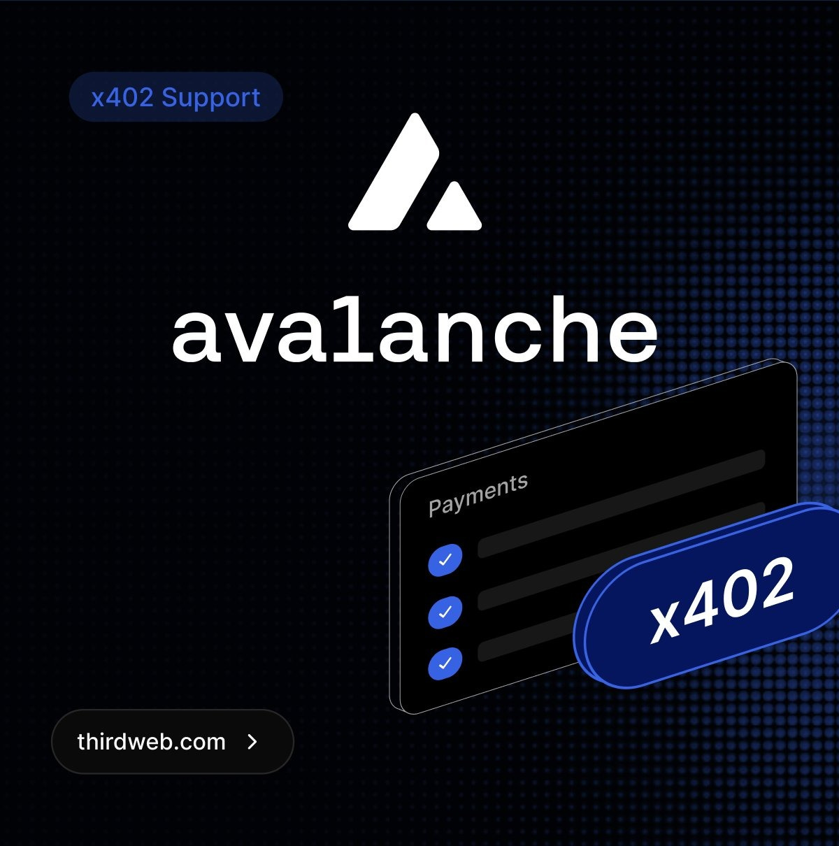 Thirdweb announced support for x402 chains on Avalanche, enabling seamless launches through their facilitator. [Developer resources]