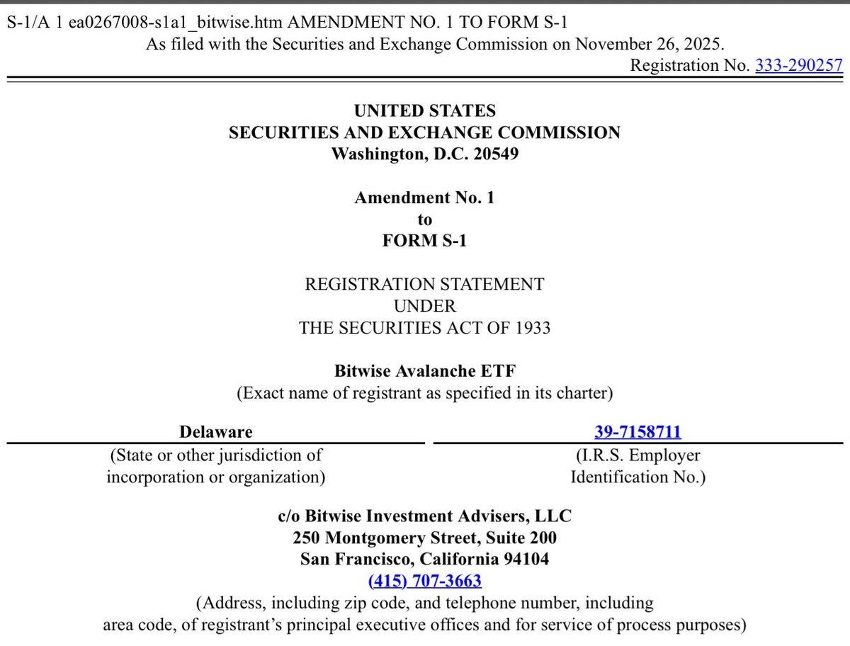 Bitwise filed for the first US crypto fund offering staking yields, planning to stake up to 70% of AVAX holdings. [Read the filing news]