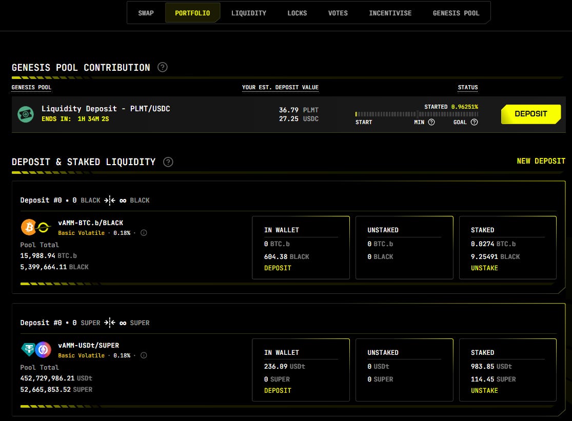 BLACK tokens can be locked to mint veBLACK (the governance NFTs). The longer the lock, the more voting power. Supermassive locks are permanent, never decay, and unlock extra benefits. Each week, veBLACK holders vote for which liquidity pools receive rewards. Those who vote get a share of trading fees, incentives, and bribes.