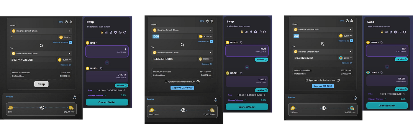 The user experience remains simple; connect wallet, select tokens, confirm transaction.