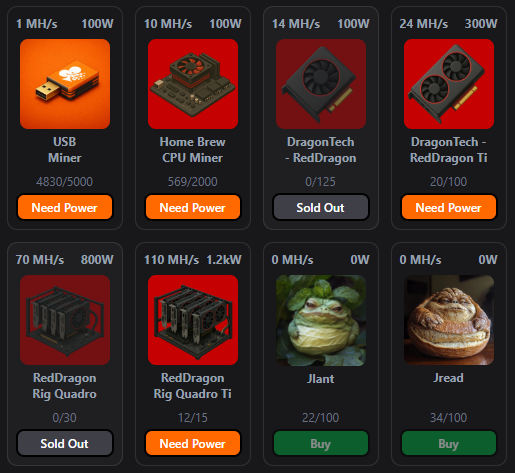 2x USB Miners and 2x Dragon Tech (Red Dragon) GPU miners (33 $AVAX, 30 MH/s, 400W total, Red Dragons only on marketplace)