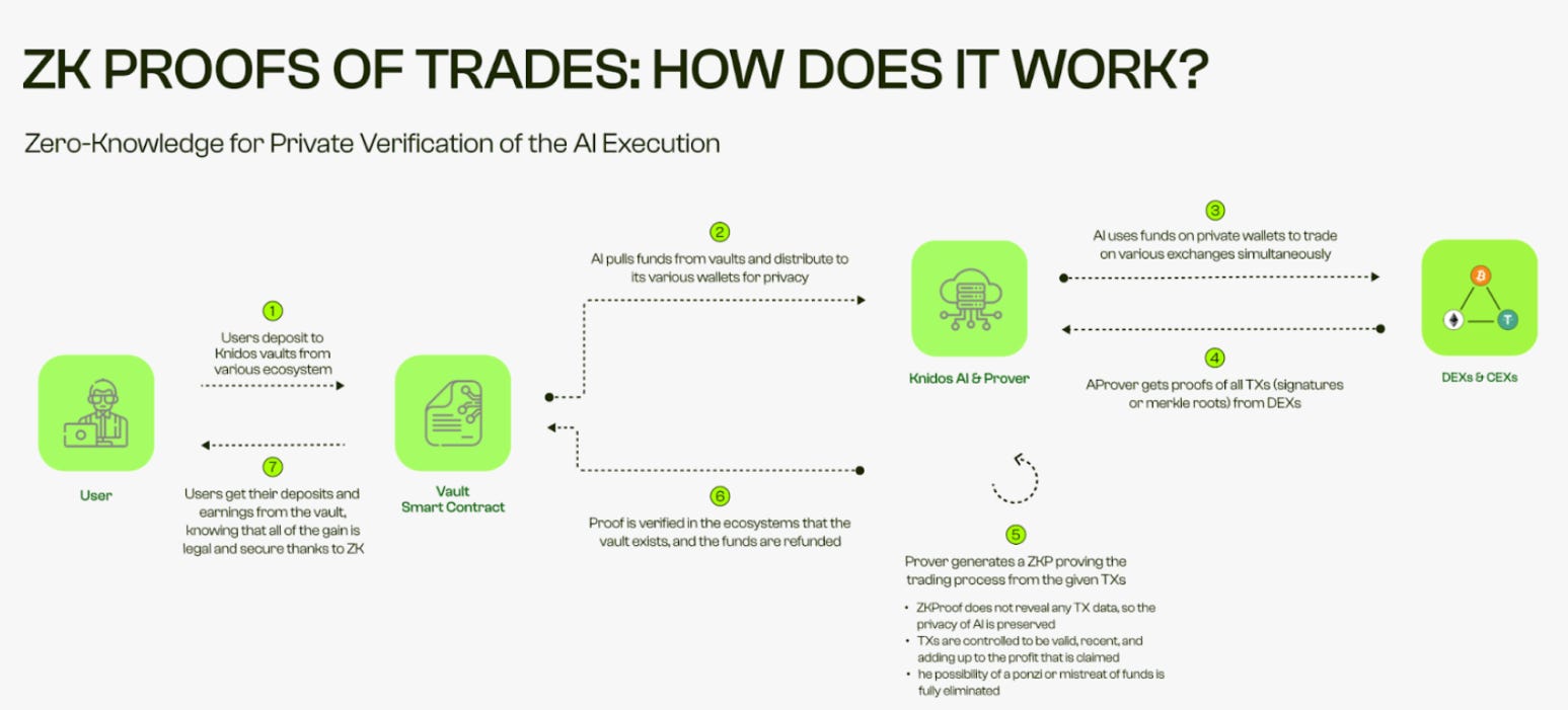 The main objection to AI-managed crypto funds is transparency. Most platforms ask investors to trust performance numbers with little visibility into how decisions are actually made. Knidos addresses this through ZK trade proofs: cryptographic verifications that confirm trades happened correctly without exposing the underlying strategy. The practical outcome is that performance is not just reported, it is provable. In a sector with a history of opaque fund structures, that difference is significant.